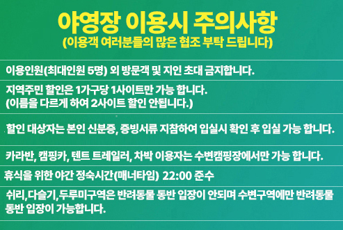 이용안내쉬리캠핑장 이용안내입니다오시기전 확인 해보세요